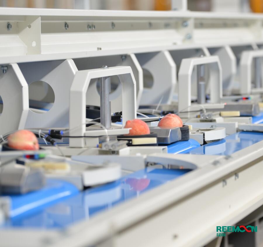 為了改變桃子在分選過程中被磕傷、碰傷的現(xiàn)狀,綠萌特意研發(fā)出桃類呵福式分選設(shè)備,采用柔性托盤式果托,完全避免桃與桃之間的碰撞,呵護(hù)桃子不受損傷。該分選線外部分選采用光學(xué)成像技術(shù),自動(dòng)設(shè)別桃子外部大小、色澤、瑕疵,內(nèi)部品質(zhì)分選則采用綠萌核心技術(shù),對(duì)桃子內(nèi)部的糖度、褐變、果肉損傷情況進(jìn)行檢測(cè),根據(jù)客戶的分選需求,分流到指定包裝口進(jìn)行裝箱,出口處可設(shè)置18個(gè)等級(jí),讓裝箱更高效便捷。